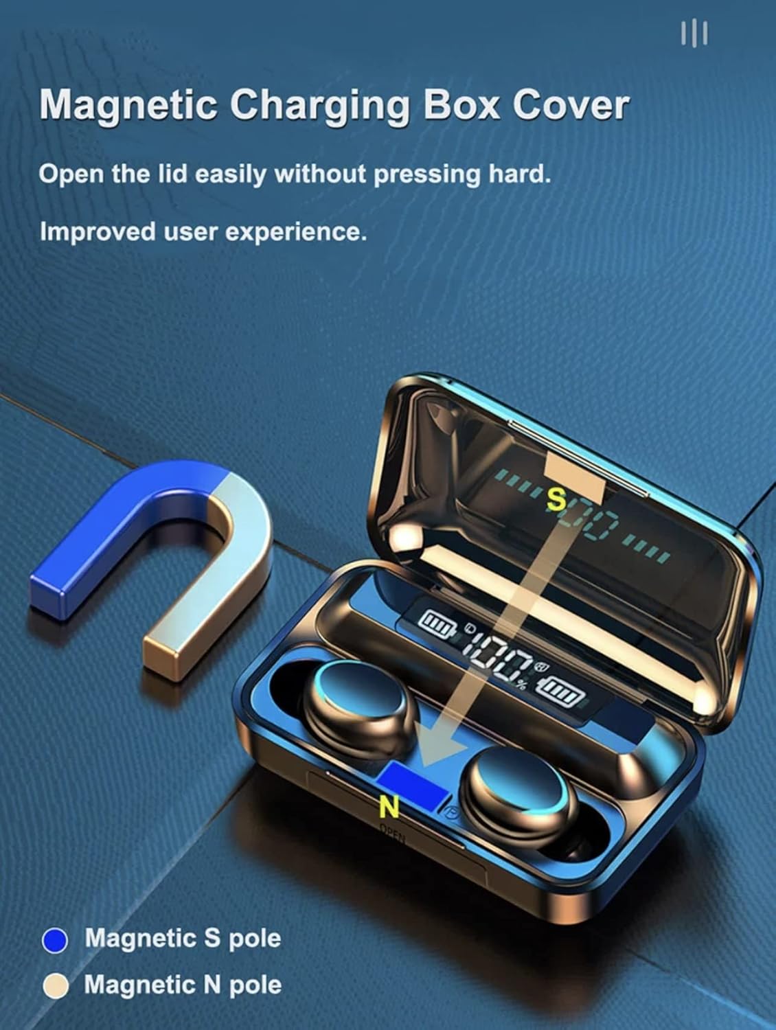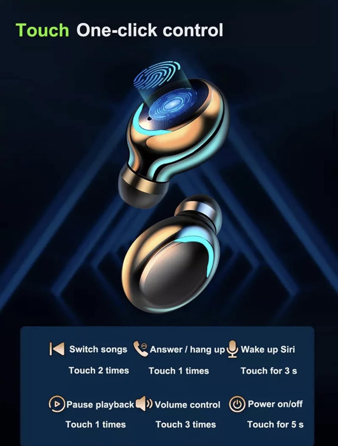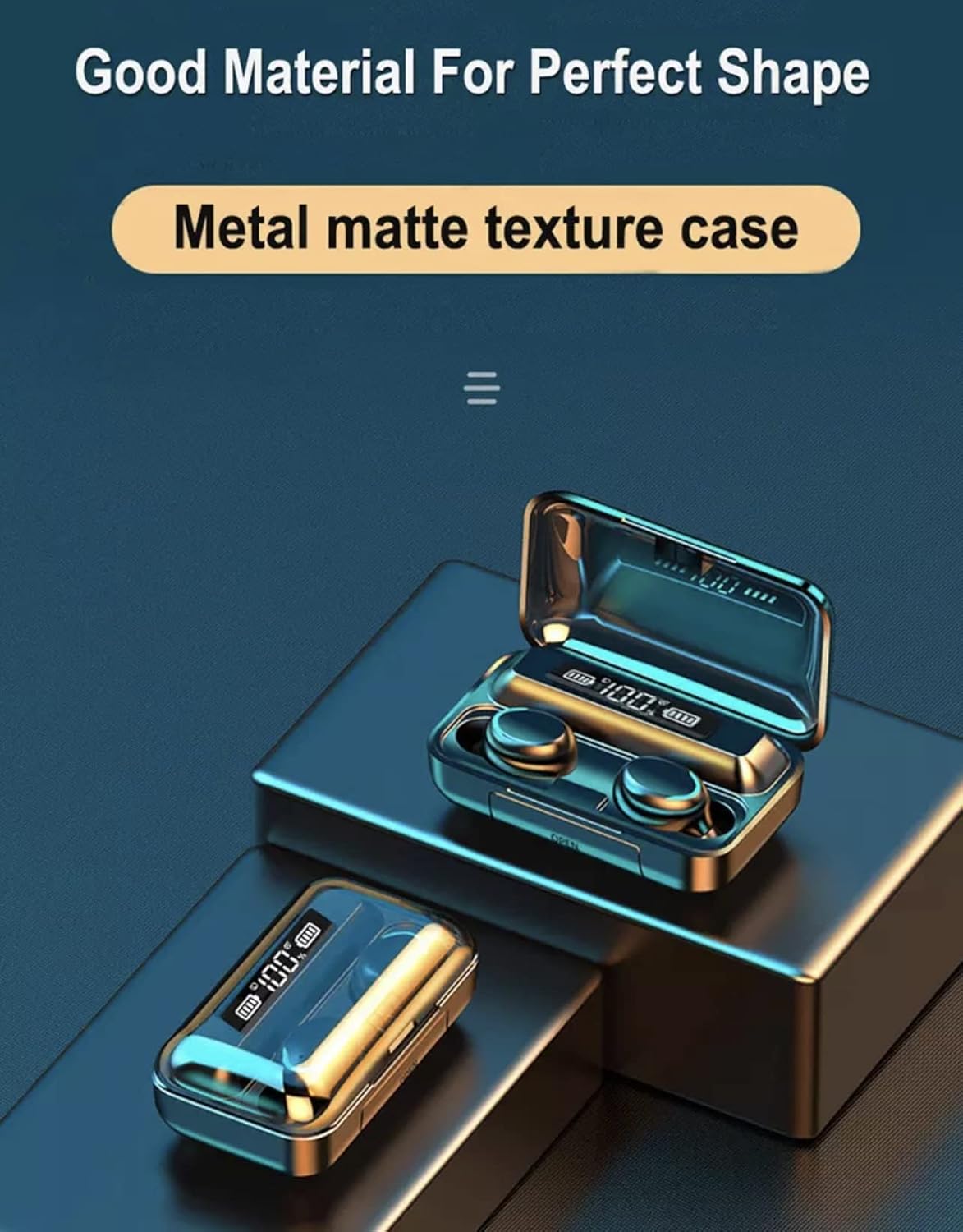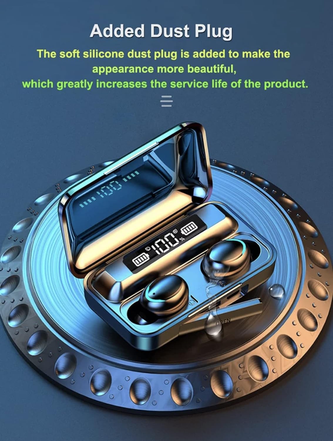 F9 Auriculares inalámbricos Bluetooth V5.3 Auriculares TWS Control táctil Auriculares deportivos estéreo con reducción de ruido Auriculares con Powerbank (negro) Sonido envolvente 8D, chip de doble oreja 5.0, gran capacidad, auriculares Bluetooth inalámbricos verdaderos Diafragma de graves de grafeno, tecnología de alta frecuencia HIFI, unidad de altavoz dinámico de 0.394 in.Dos métodos de conexión: simple/doble de uso gratuito, escucha de un solo oído para disfrutar solo, escuchar estéreo de alta fidelidad en ambos oídos. Llamada binaural HD, emparejamiento automático de arranque 5.0, CVC8.0 integrado IC de reducción de ruido activo. Cuenta con llamada binaural HD, pausa de reproducción, respuesta colgando, invocar Siri, ajuste de volumen, cambio de canción arriba y abajo, arranque automático, emparejamiento automático, reducción de ruido inteligente, sin retraso en el juego. Dispositivos compatibles: iPhone, Galaxy, iPad, Universal, Todos los dispositivos con BluetoothIPX7 impermeable y resistente al polvo: impermeable diario, resistencia al sudor y a la lluvia, no se puede sumergir en agua Incluye: Almohadillas para Auriculares Estación de carga Cable Manual de usuario Estuche de Protección ¡Todos nuestros productos son 100% garantizados!