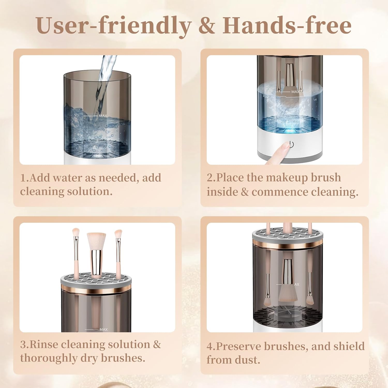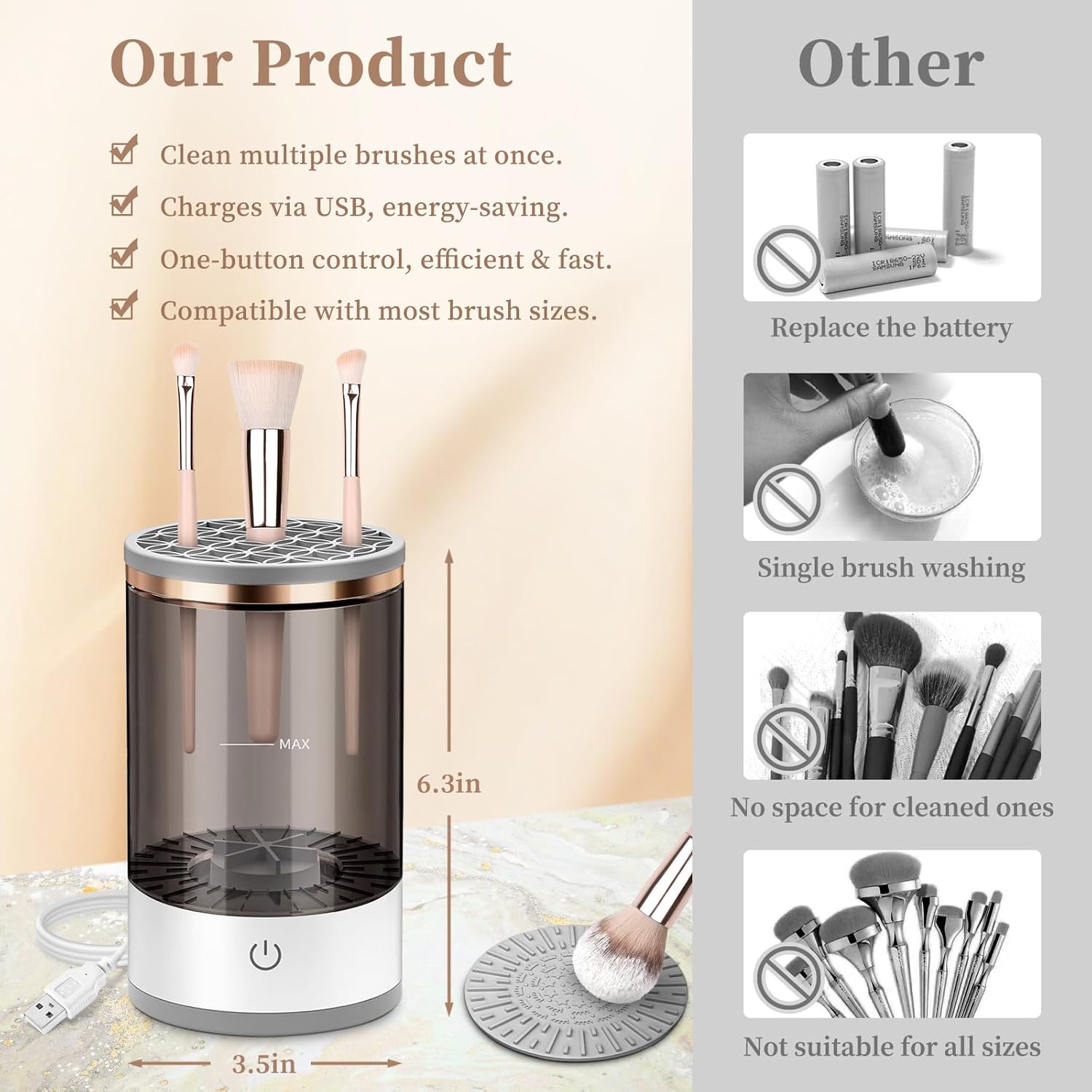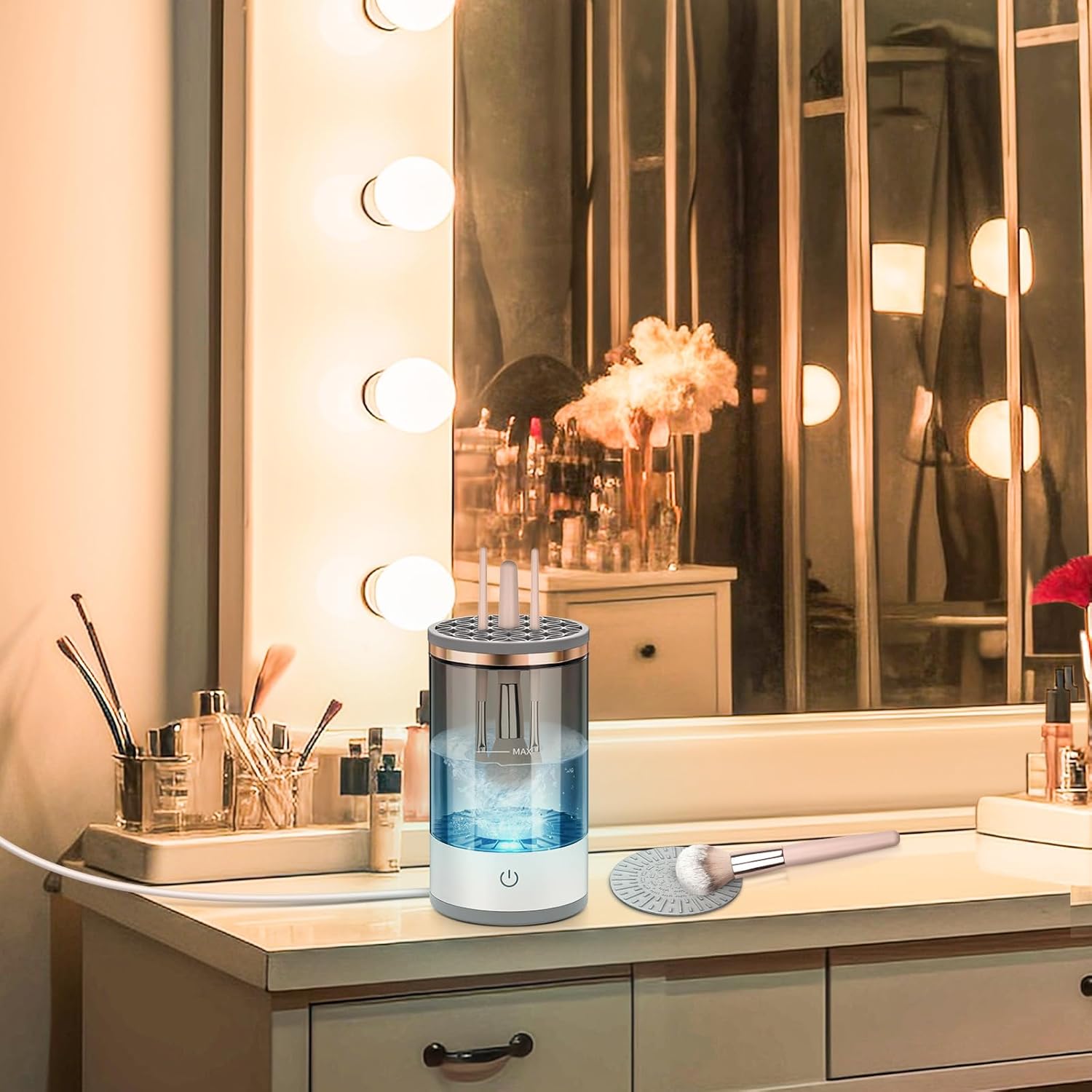 LIMPIADOR DE BROCHAS ELECTRICO , PARA MAQUILLAJE SHOPPEDI2 : Descripción Conoce nuestra máquina limpiadora de brochas de maquillaje eléctrica, tu nuevo aliado de belleza esencial. Olvídate del tedioso proceso de limpieza manual y sumérgete en la comodidad de limpiar y secar tus pinceles de maquillaje en segundos. El limpiador automático de brochas de maquillaje 3 en 1 es un limpiador de brochas de maquillaje eléctrico con tecnología de limpieza avanzada. Su motor giratorio elimina con precisión impurezas, aceites y residuos de maquillaje de cada cerda con fuerza y suavidad.