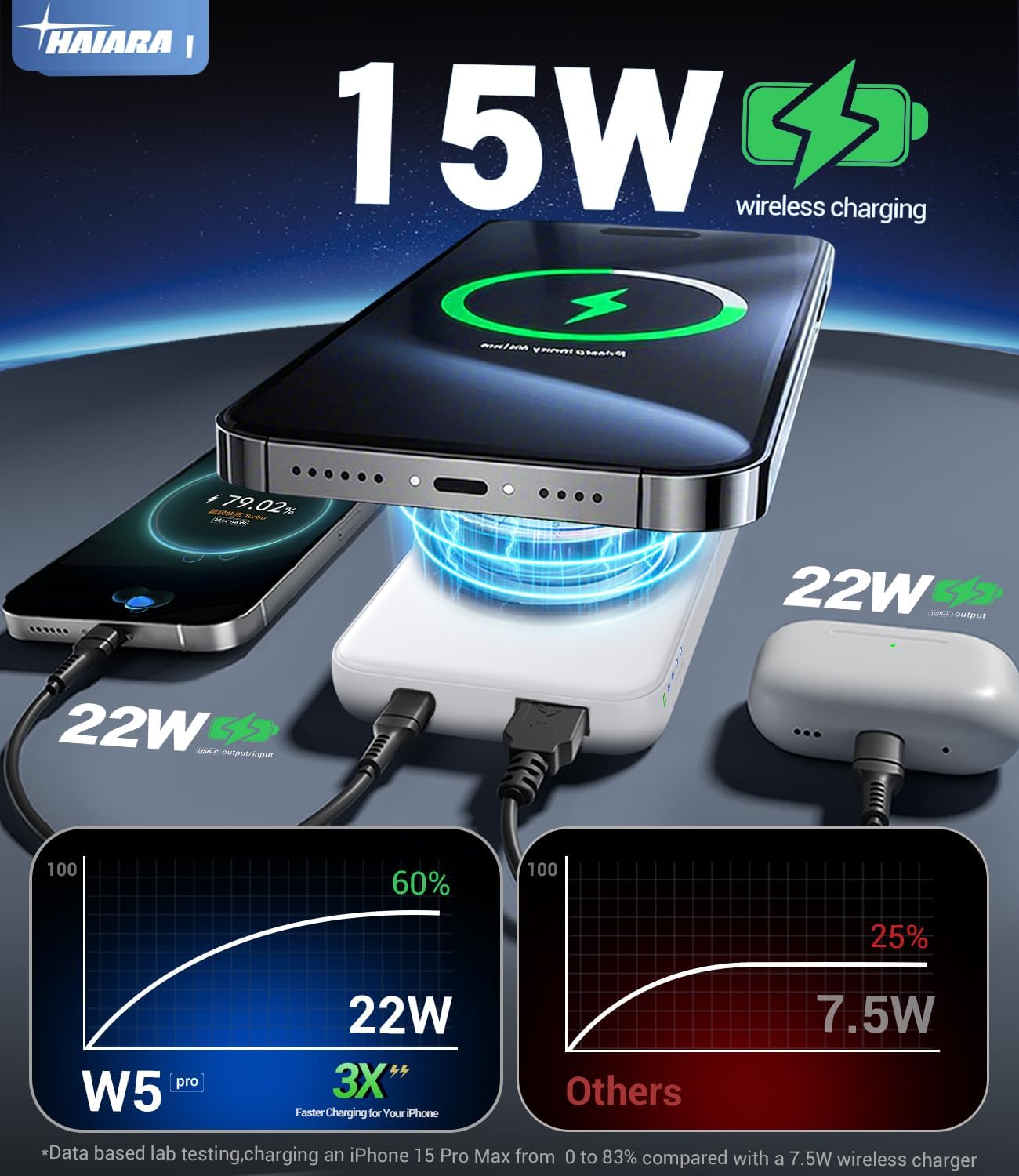 La batería externa Magsafe de 10,000 mAh ofrece una carga rápida y eficiente compatible con dispositivos Apple que soportan carga inalámbrica. Su diseño compacto y liviano facilita su transporte, mientras que la tecnología Magsafe garantiza una conexión magnética segura y estable. Ideal para usuarios que necesitan recargar su iPhone o AirPods en cualquier lugar sin complicaciones, combinando potencia y comodidad en un solo dispositivo.