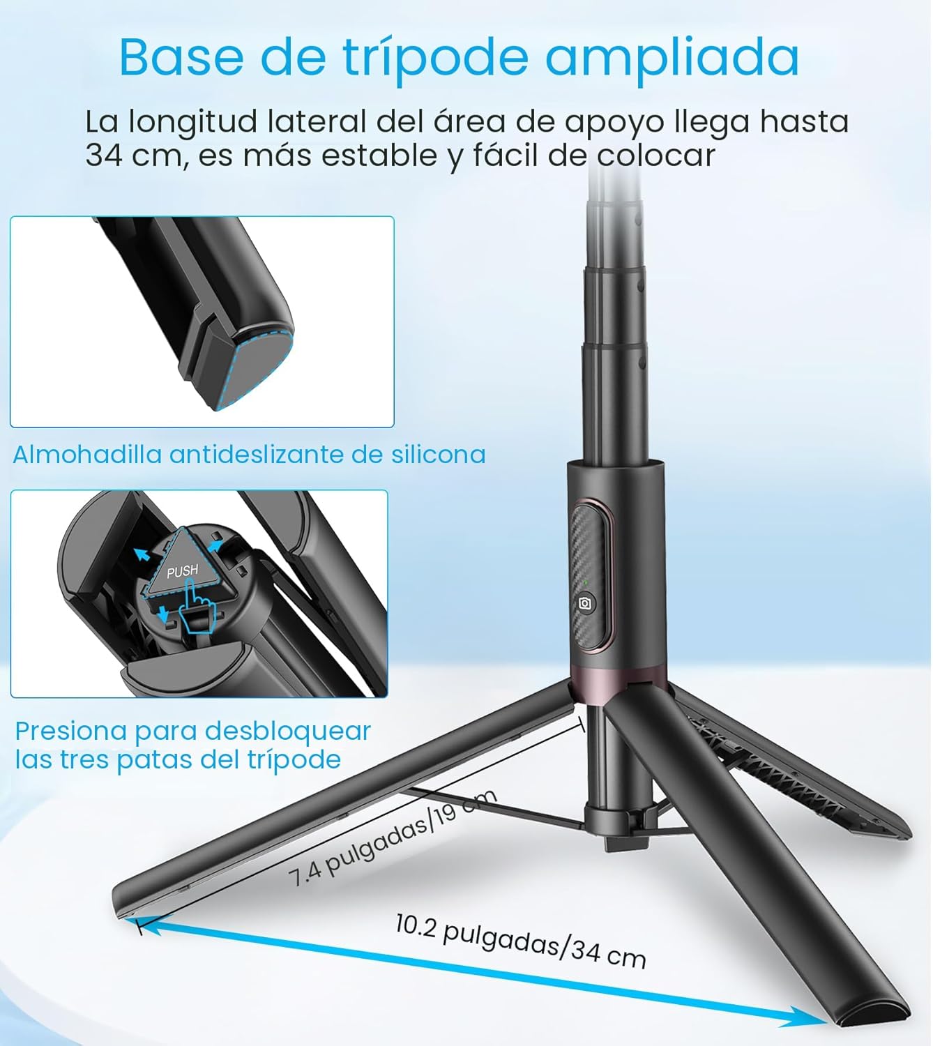 El palo selfie P60D es un accesorio práctico y funcional para quienes desean mejorar su experiencia de fotografía con smartphones. Aquí tienes una descripción detallada: Características principales: - **Diseño telescópico:** Permite ajustar la longitud del palo para capturar imágenes desde diferentes ángulos y distancias, ideal para fotos grupales o selfies amplios.- **Compatibilidad universal:** Se adapta a la mayoría de los smartphones, gracias a su soporte ajustable que sujeta de manera segura el dispositivo.- **Construcción resistente:** Fabricado con materiales duraderos que garantizan estabilidad y un uso prolongado.- **Ligero y portátil:** Su diseño compacto y ligero facilita el transporte, pudiendo llevarlo en mochilas o bolsos sin inconvenientes.- **Mango antideslizante:** Proporciona un agarre cómodo y seguro, evitando que se resbale durante el uso.- **Control remoto Bluetooth (opcional):** Algunos modelos incluyen un control remoto, lo que permite tomar fotos a distancia sin necesidad de tocar el teléfono. El palo selfie P60D es una excelente opción para quienes buscan capturar momentos especiales de manera fácil y divertida.